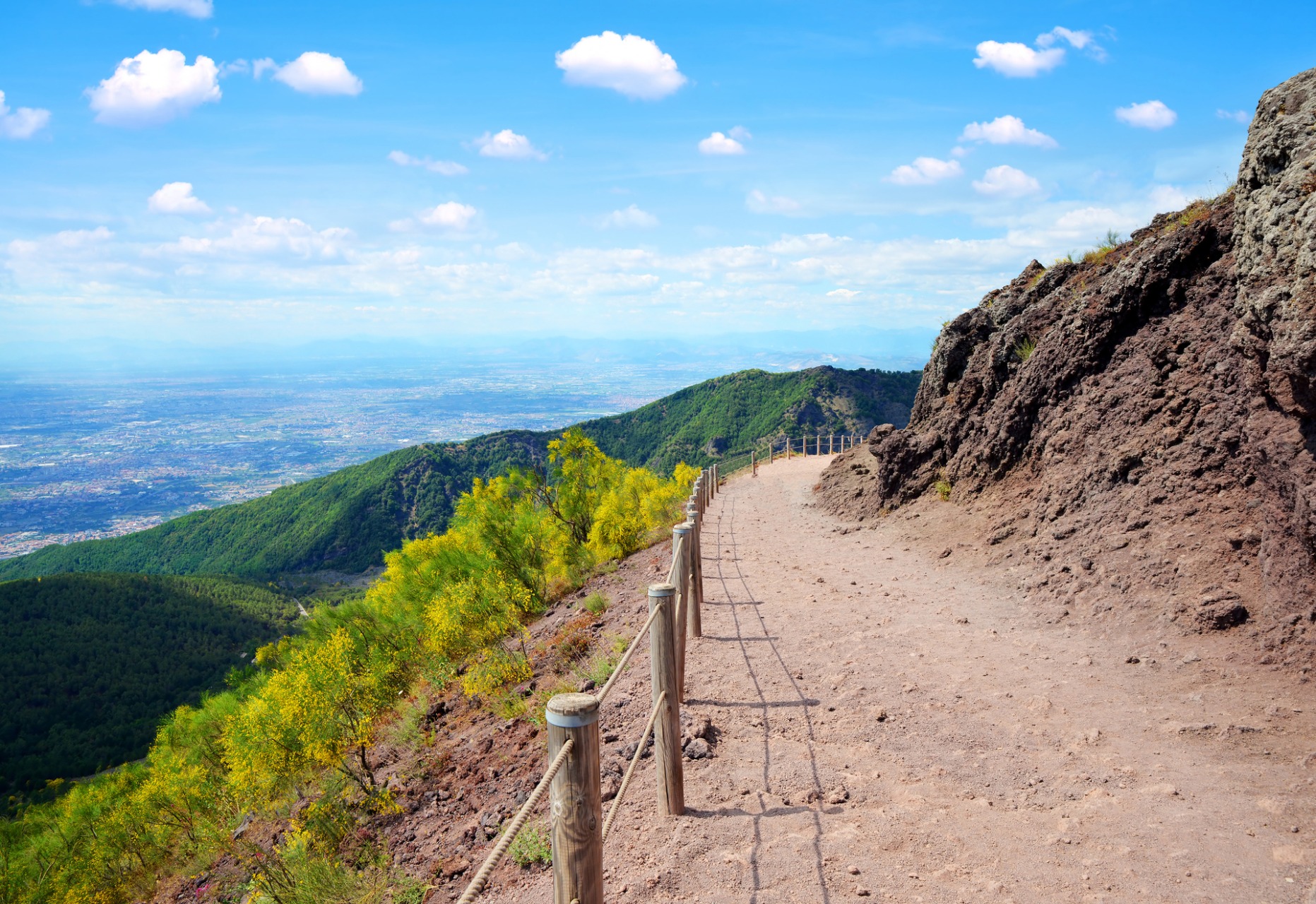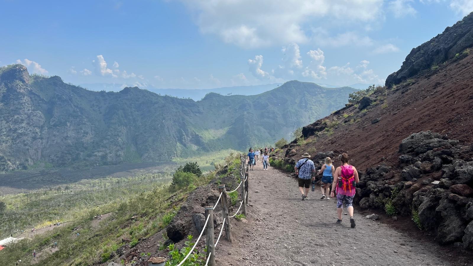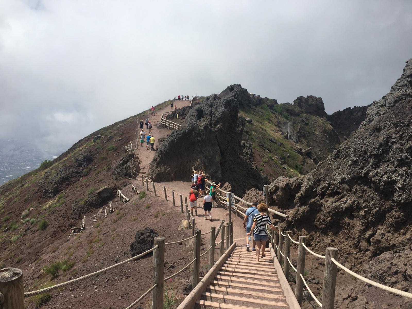 After your visit, enjoy a relaxed lunch break before heading toward the iconic Mount Vesuvius. The ascent takes you through changing landscapes shaded woodlands, Mediterranean vegetation, and stark volcanic terrain each revealing the natural power that shaped this region. A short uphill walk of approximately 700 meters leads you to the edge of the crater, where you can gaze into the vast caldera and take in breathtaking panoramic views over the Bay of Naples.